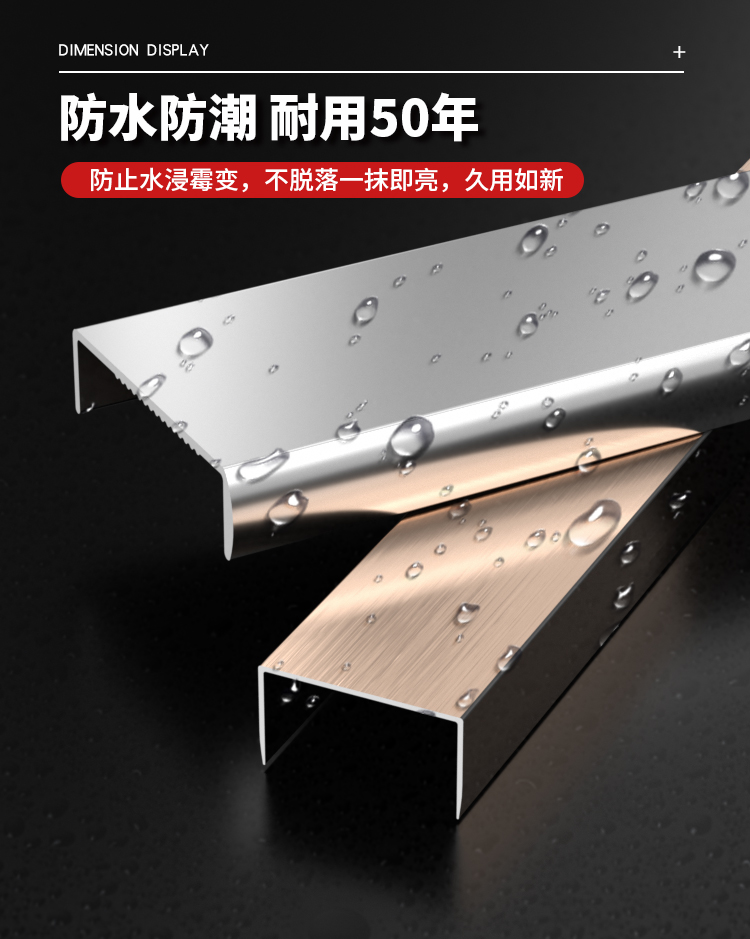 铝合金具有天然的抗腐蚀性能。美阳建材在此基础上,对铝合金装饰线条进行特殊的表面处理,如阳极氧化、电泳涂漆等工艺。经过阳极氧化处理的线条,表面形成一层坚硬且致密的氧化膜,其耐腐蚀性比普通铝合金提升了数倍,能够有效抵御酸雨、海风等恶劣环境的侵蚀,即便在沿海地区或高湿度环境中使用多年,依然能保持亮丽如新,大大延长了产品的使用寿命。 二、丰富多样的表面处理与色彩选择